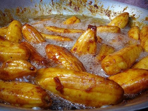 - When the oil becomes hot, deep fry the bananas for 2 minutes.